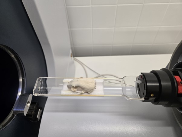 Dysponujemy skanerem 3D ATOS Core (GOM), przeznaczonym do skanowania obiektów o zróżnicowanej wielkości — od niewielkich struktur, takich jak zęby czy małe czaszki, po większe okazy, np. czaszki żubra. Ponadto korzystamy z wysokorozdzielczego systemu rentgenowskiej mikrotomografii komputerowej in vivo (SkyScan 1276, Bruker) wyposażonego w system do wziewnej anestezji, który umożliwia skanowanie obiektów o długości do 150 mm i masie do 1000 g.