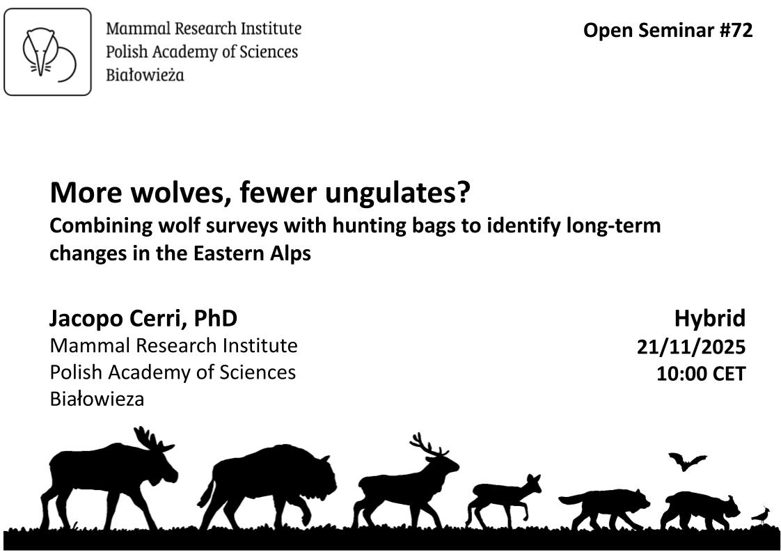 Temat: More wolves, fewer ungulates? Combining wolf surveys with hunting bags to identify long-term changes in the Eastern Alps
